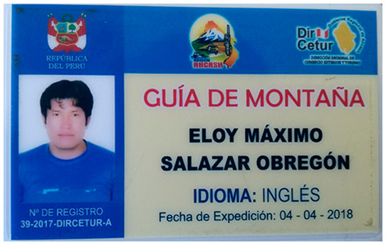 IMPORTANT EXPERIENCES: Expeditions Cordillera Blanca - Ishinca 5530 m, Tocllaraju 6034 m and Alpamayo 5947 m, as part of the Andean Peaks SAC company team (2017), Expeditions Solimana 6093 m, Coropuna 6425 m (2017 and 2018), Also He lead the expedition ¨MISSION¨ of Killian Brom, athlete of red bull France ¨down hill chachani 6057 m. (2018).